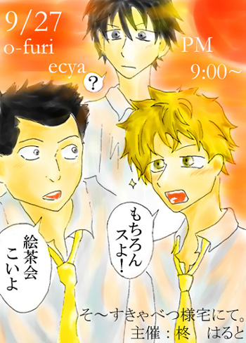 とりあえず、「おお振り」という言葉だけでも知っている人は参加しなさい^^そ~す様宅だからかなりの神絵が見られると思われますよ・・・!会話だけでもいいので、絵描かない人でもどしどしどーぞ!!